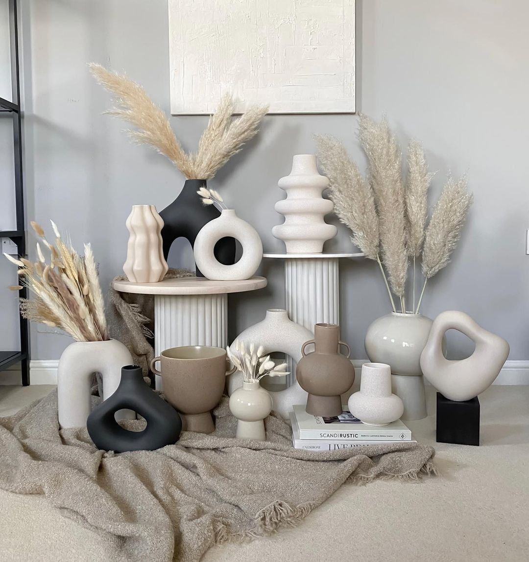 Conjunto de elementos decorativos inspirados en el estilo nórdico contemporáneo, ideal para dar calidez y sofisticación a cualquier ambiente del hogar o la oficina.